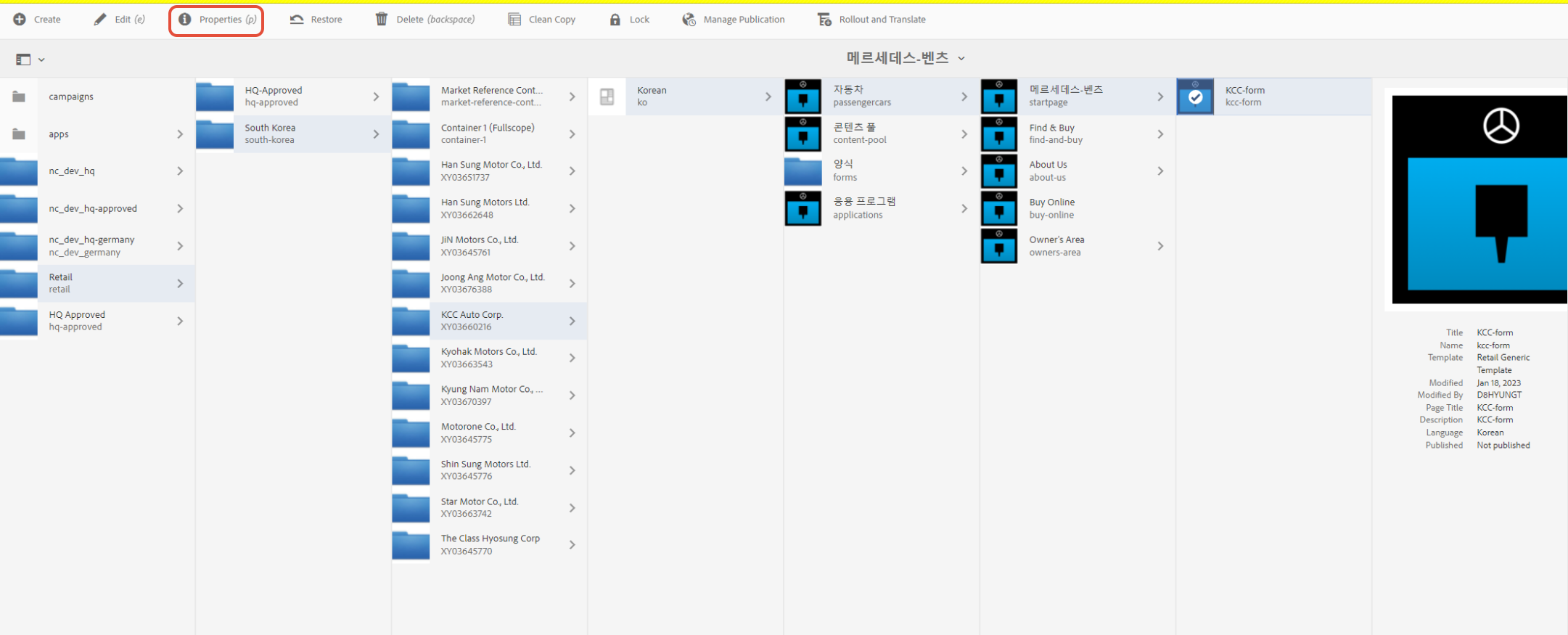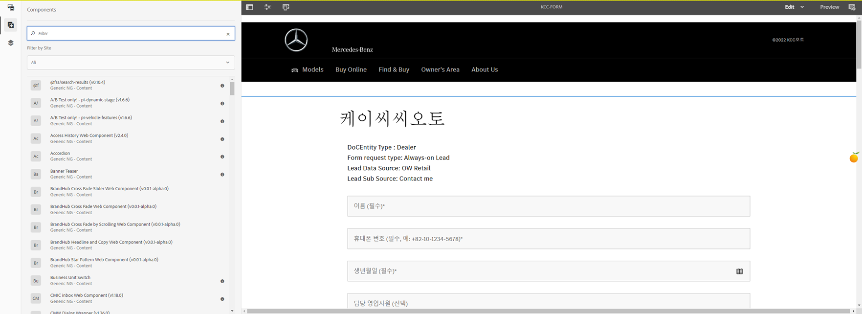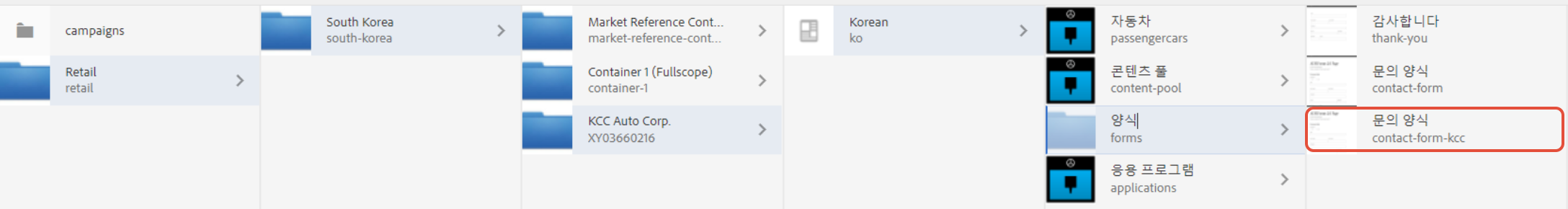 1. 자사 사이트 폴더 > 양식 > 문의양식 (ex. contact-form-kcc)을 확인합니다.
