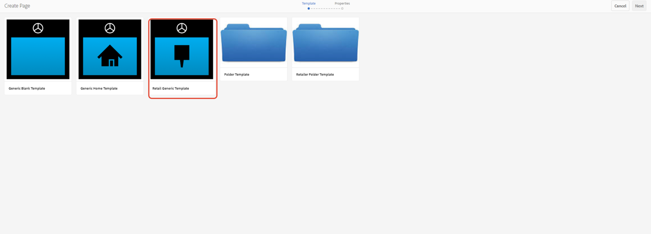 3. 새로운 페이지를 생성합니다. Create page > Retail Generic Tamplate