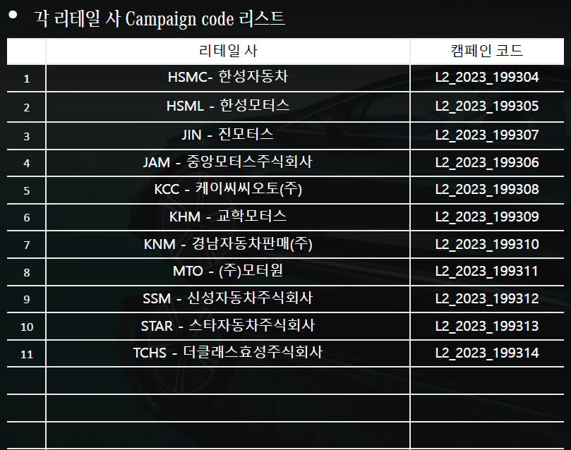 “CRM Field Value” = 각 리테일 사 Campaign code (8-1 참고)